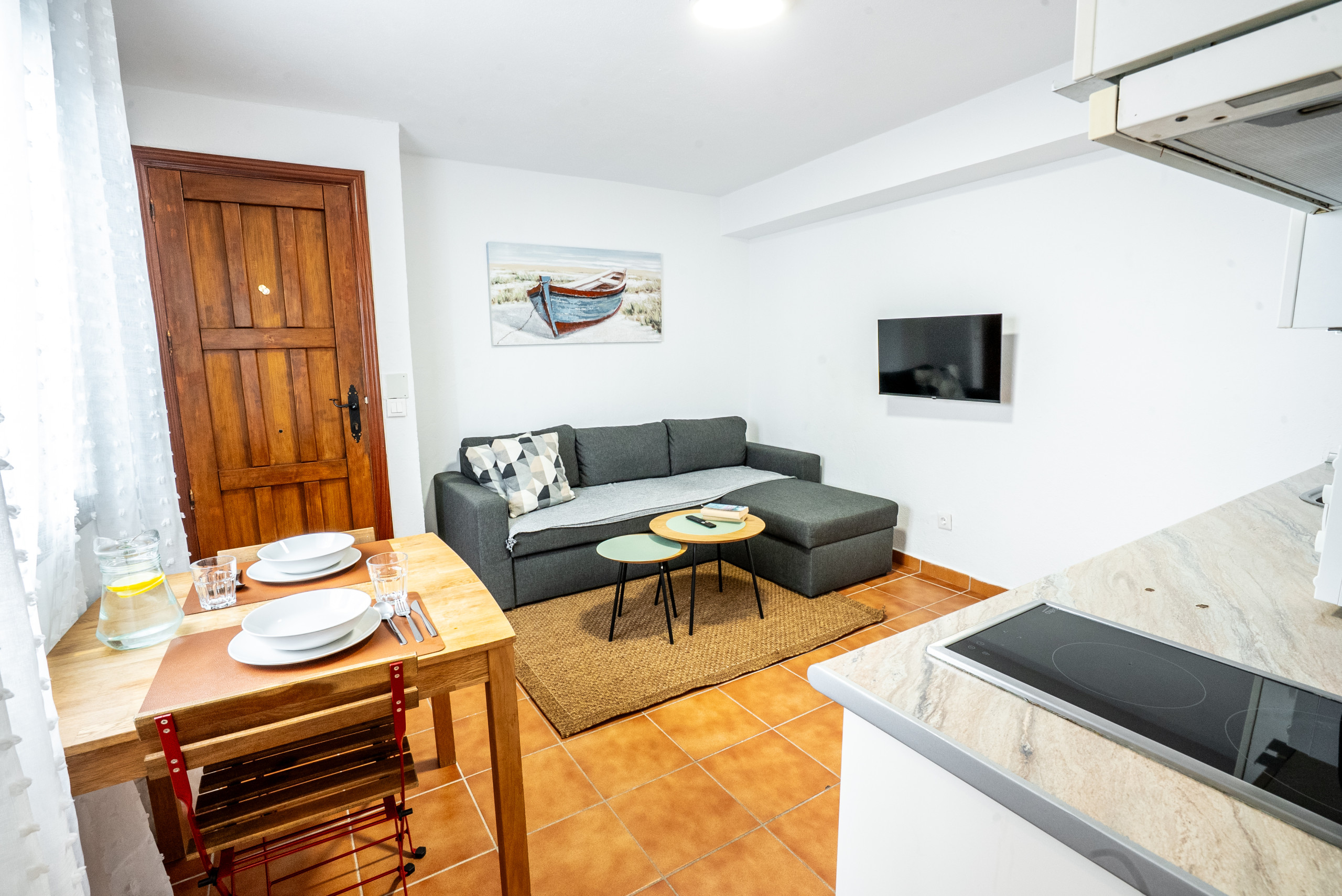 • Amplio salón/comedor con sofá cama (140 x 200 cm) y Smart TV de pantalla plana con cable