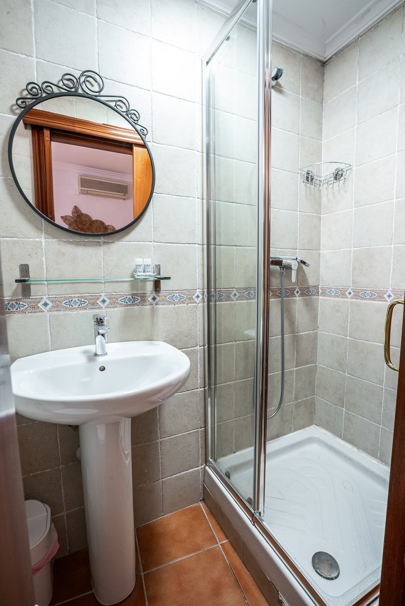 Baño completo renovado con ducha, lavabo y WC