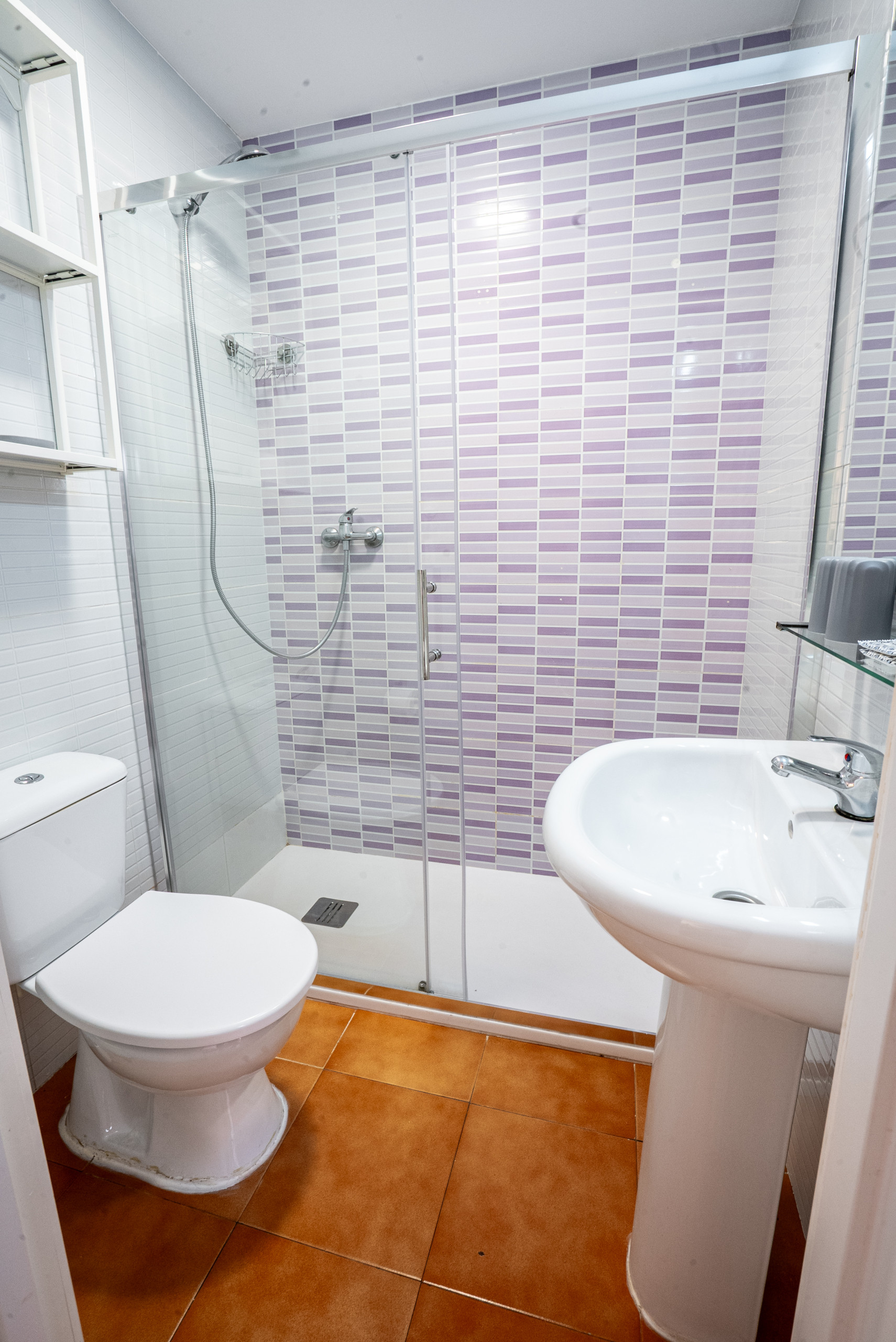 • Baño moderno con ducha reformada, lavabo y WC
