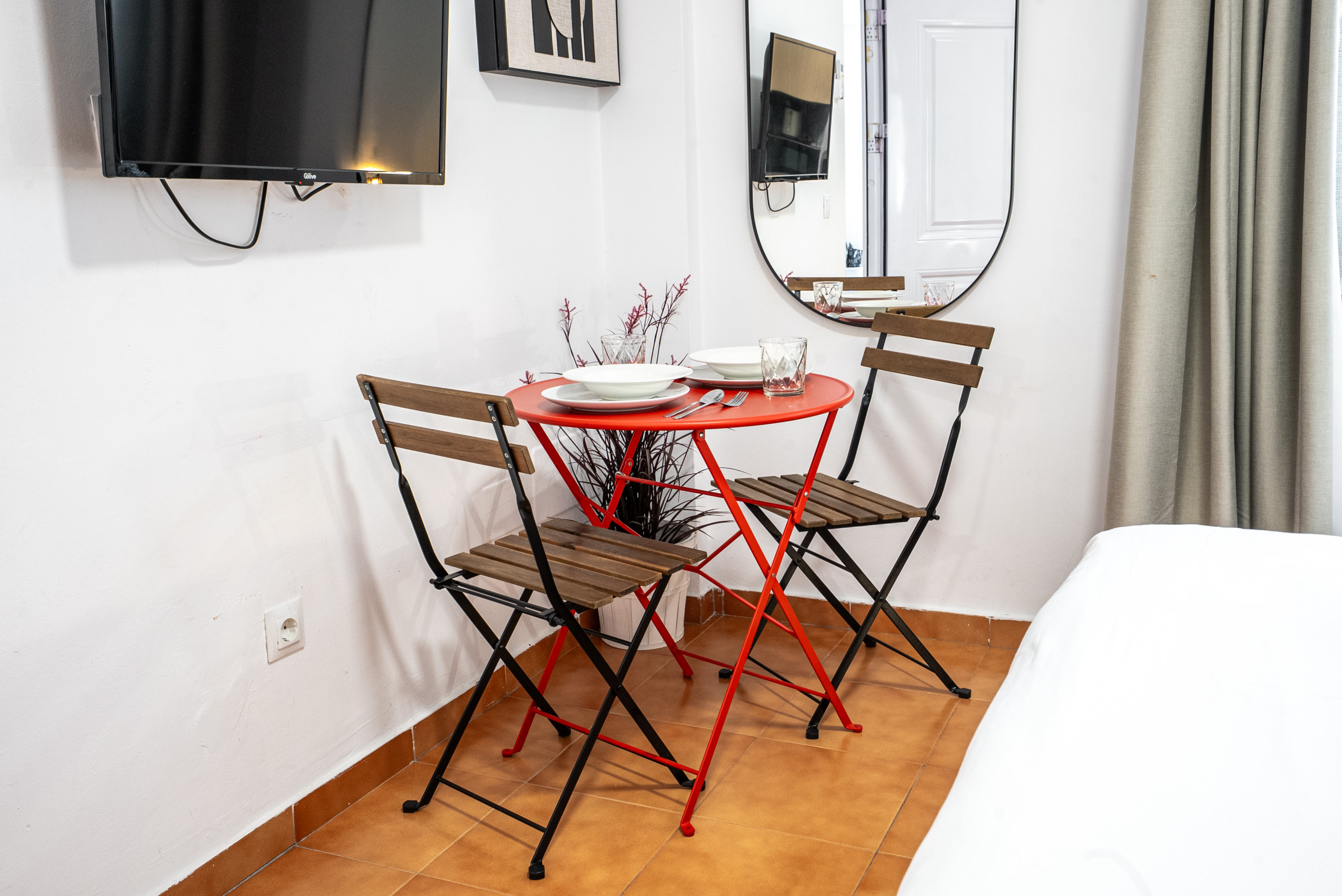 • Distribución diáfana con smart TV, mesa de comedor para dos personas y acceso al balcón Julieta