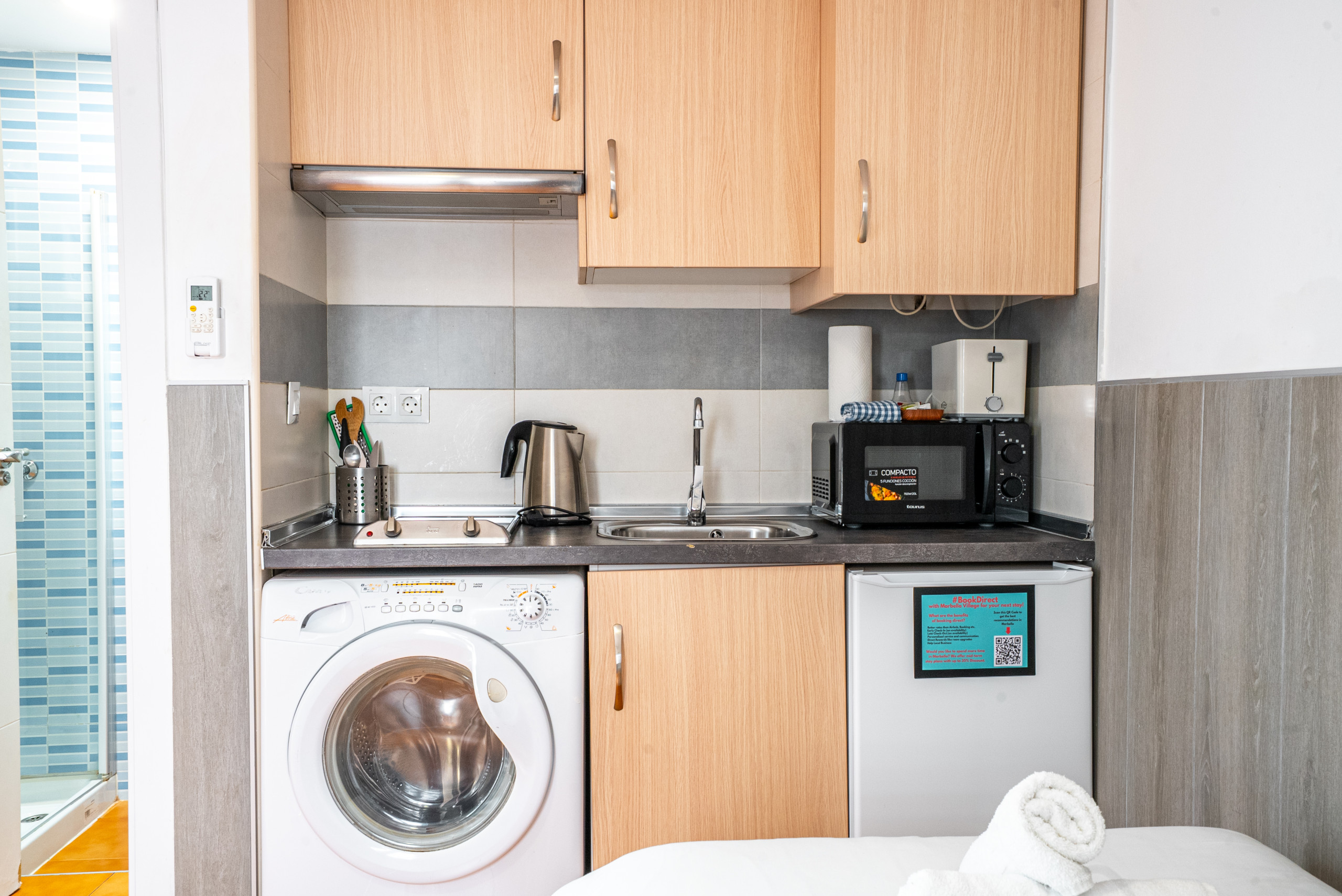 Betreten Sie dieses Serviced Studio mit privater Terrasse und charmantem Blick auf eine ruhige Straße der Calle Aduar. Ob romantischer Kurzurlaub oder Auszeit mit Freunden – genießen Sie den Komfort eines voll ausgestatteten Ferienapartments in der Nähe der besten Sehenswürdigkeiten Marbellas.