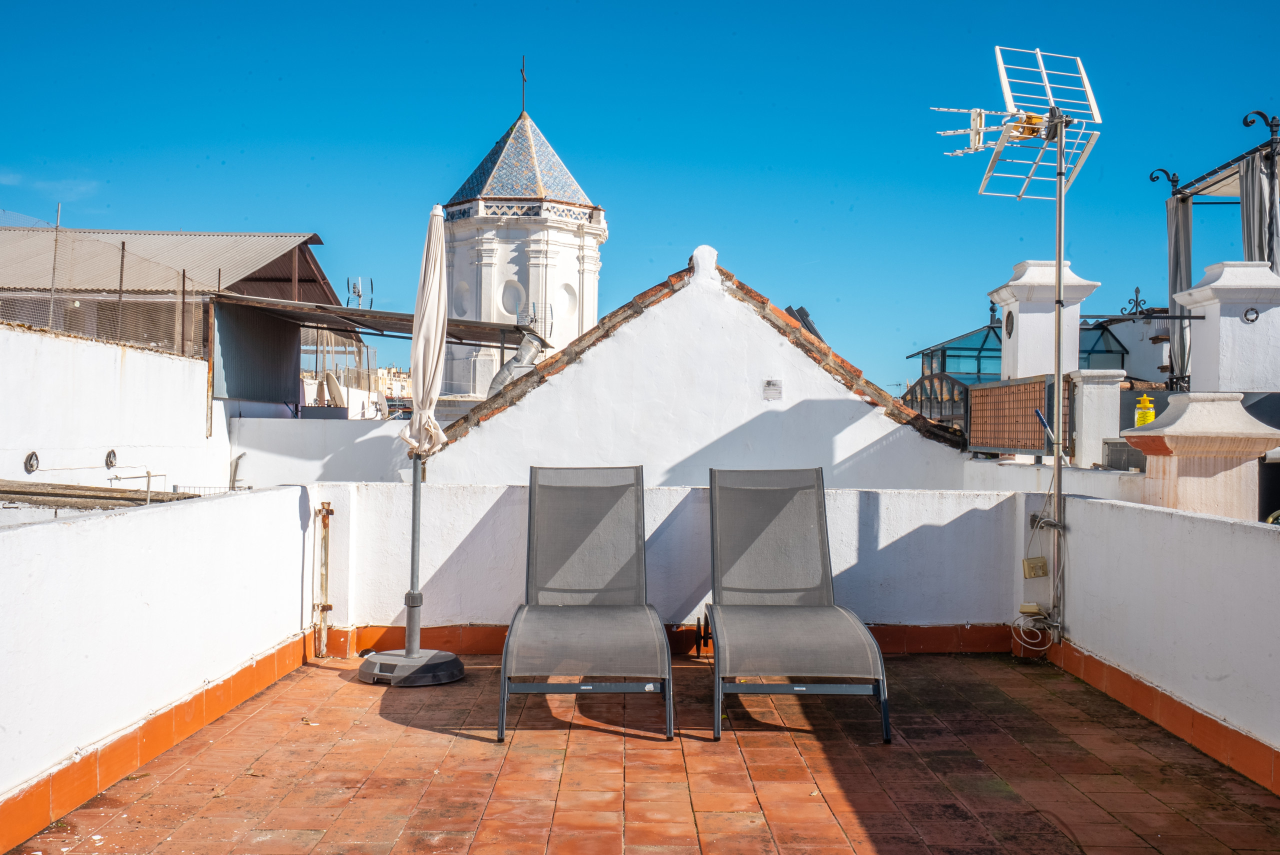 • Gemeinschaftliche Dachterrasse mit Bergblick – entspannen Sie auf der Terrasse mit Sonnenliegen und genießen Sie die mediterrane Sonne und Panoramablicke