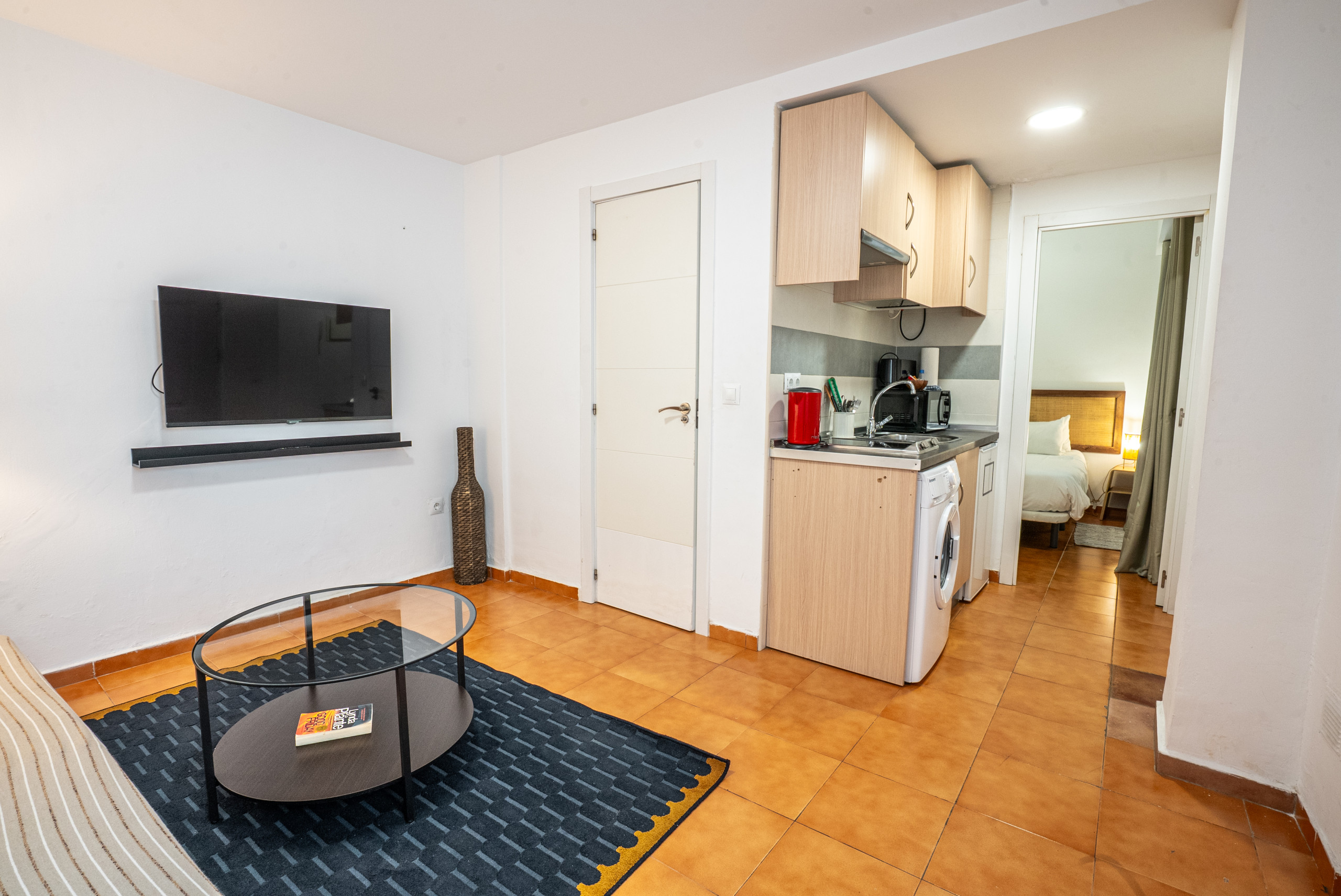 • Bright living area with comfortable sofa, Smart TV, and cable TV—perfect for relaxing after a busy day