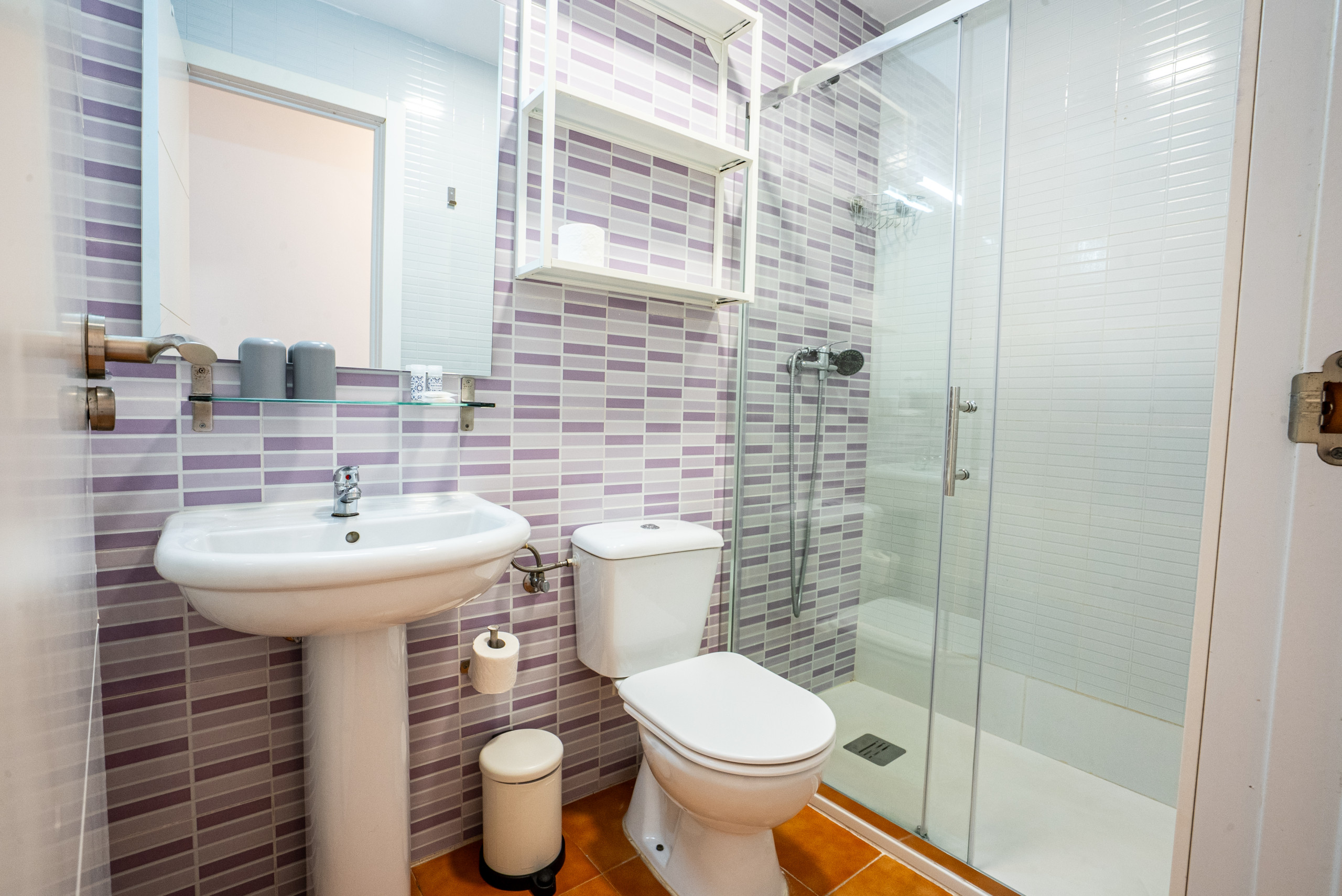 • Modern bathroom with renovated shower, washbasin, and toilet